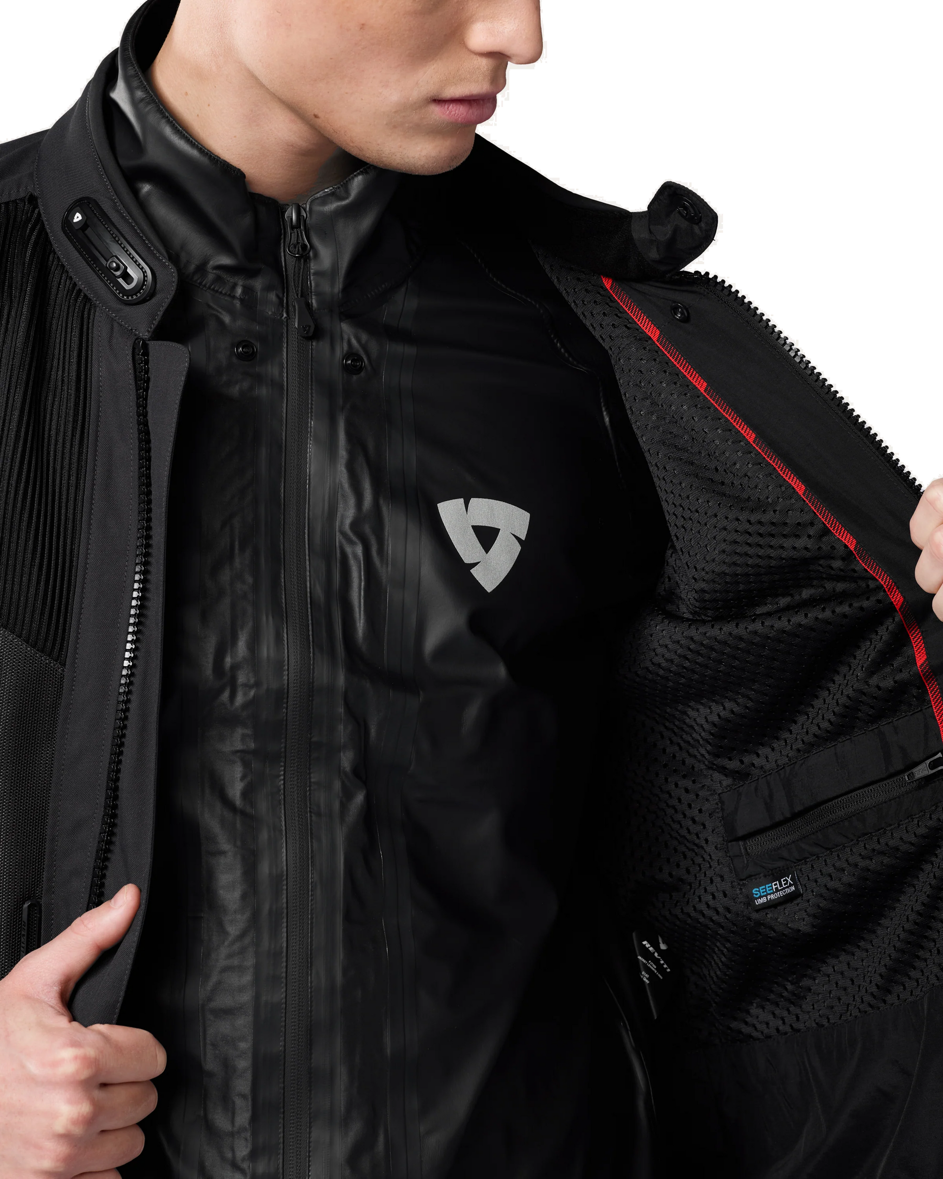 Giacca versatile multi stagionale in rete impermeabile per le avventure in moto con svariate condizioni meteo.