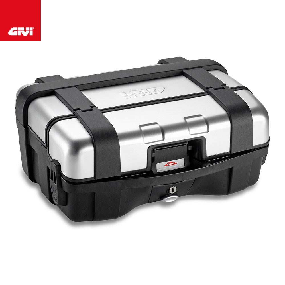 Dal punto di vista estetico la TRK33N si caratterizza per la lamina in alluminio anodizzato che ne impreziosisce il coperchio e per la struttura avvolta dalla tipica “gabbia” di rinforzo in tecnopolimero a contrasto. Questo dettaglio la rende adatta a bordo di enduro stradali, crossover e anche eleganti turistiche stradali.